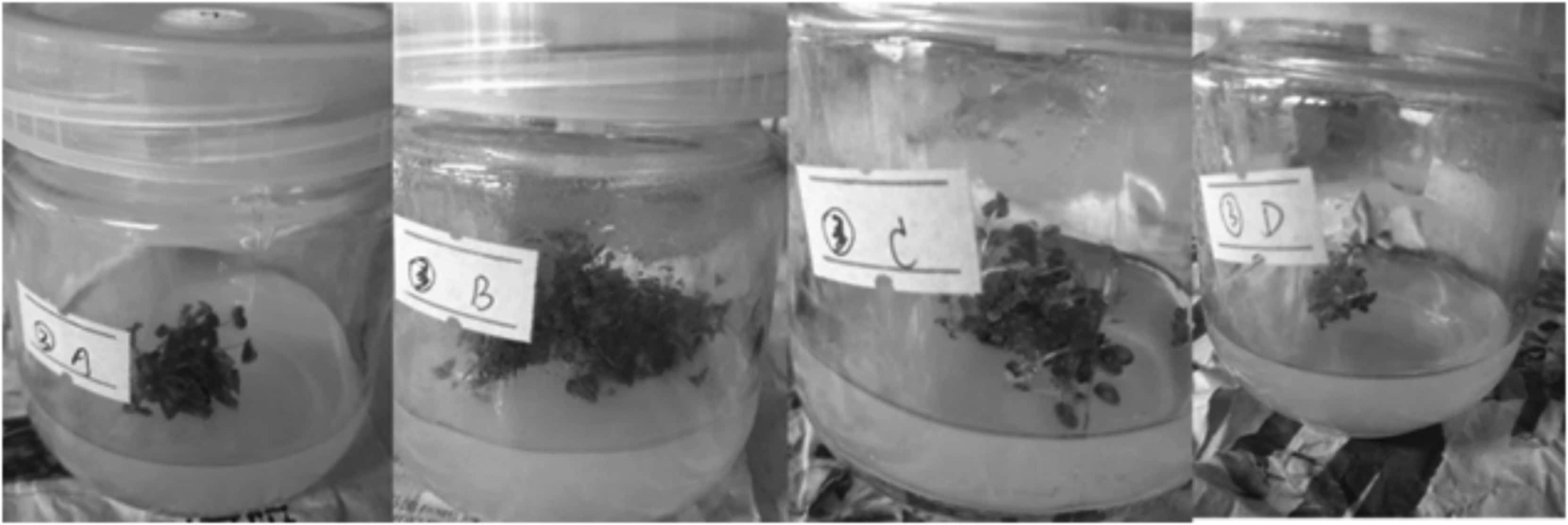 移栽前,在茄子视频成人在线观看室内去掉培养瓶的盖子3 d后,将茄子视频成人在线观看苗从瓶内取出,洗去根部的琼脂培养基,将其移入泥炭和珍珠岩为1:1的基质中,进行移栽后的养护管理。
