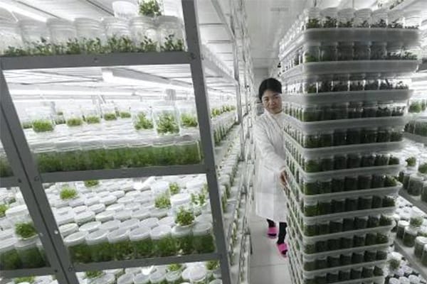 在培养室内应设有若干培养架以放置培养物在每层培养架上或是安装平板玻璃,或是安装刚硬的铁丝网,以使顶层的灯光能透射到下层的培养物上。培养架通常是由角钢制成的,每层分别装有日光灯管。灯管和上一层架子之间装有隔热层,以免上层培养物的底部受热。为了防止灯光造成的热气在培养架各层间聚集,在每层顶面的一端可安装一个小风扇,把风吹人架在两端之间的塑料管中,塑料管两侧隔一定距离钻上一个小孔,使空气沿塑料管的全长均匀流动。但这项设施并不是非有不可的。