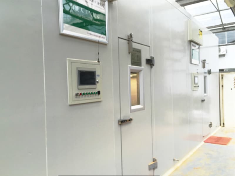 由控制室、空气处理室和环境实验室三部分组成控制室内装有控制各种因素的调节器和巡测器,调节器指示所需要的各种环境因素的正定值,并根据巡测器连续不断地检测环境实验室的实际值与正定值之间的偏差,自动发出动作信号分别传递给各种执行机构(如热源、冷源、光源、气体成分控制系统)进行动作;空气处理室内装有空气过滤器、热源、冷源、除湿器、加湿器等设备,这些设备按控制室内调节器的指令动作;环境实验室内装有电光源和监测光、温度、湿度、气体成分等因素的感应元件,并与巡测器相连接,将各感应到的实际值传给巡测器转到控制室的调节器上进行偏差识别。按此路线反复循环使环境实验室中的实际值与调节器上的正定值相同。人工气候室常用于研究环境条件对生物生命活动的影响,也可用于某些生物的栽培、驯化、育种等工作。其规模及可控条件则根据需要确定。小型的称“人工气候箱”。