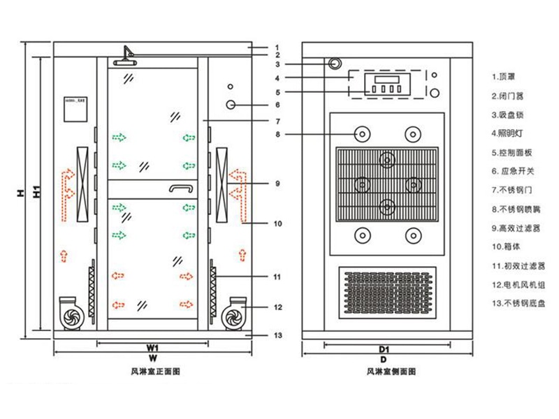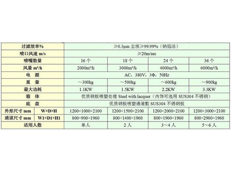 | 风淋区尺寸(mm) | 700*650*1950 | 700*650*1950 | 800*1100*1950 |